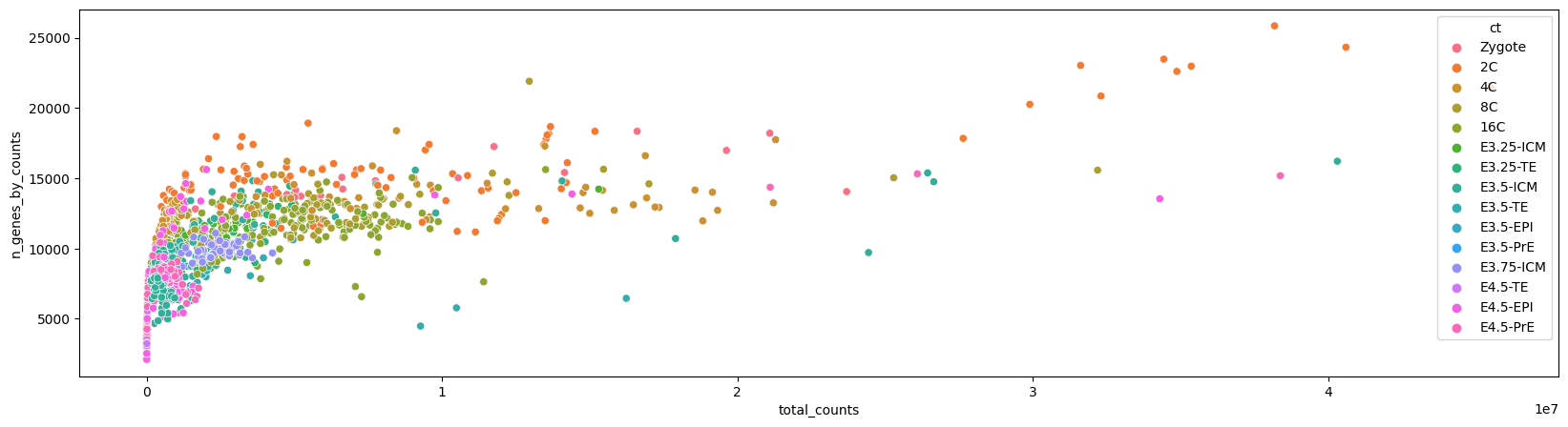 x="total_counts", y="n_genes_by_counts", ax=ax, data=adata.obs, hue="ct"