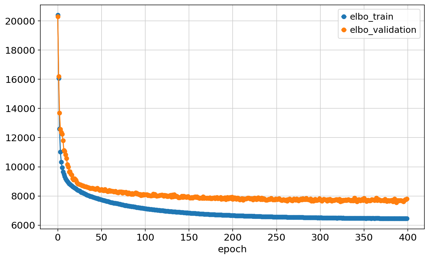 vae.train(use_gpu=1, max_epochs=400, early_stopping=True)GPU available: True (cuda), used: True