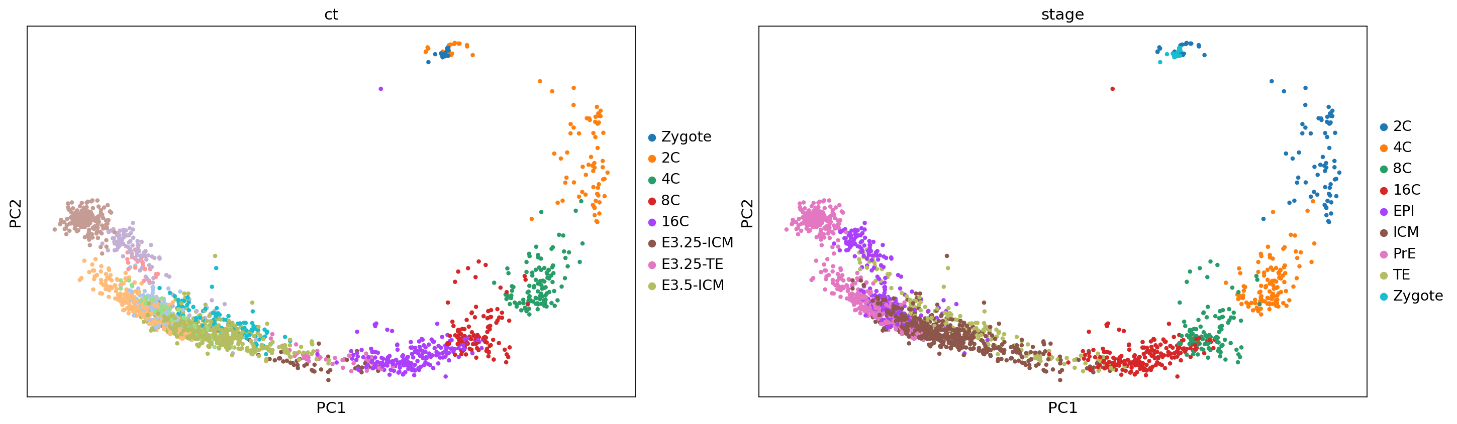 obs: 'batch', 'experiment', 'technology', 'ct', 'ct_orig', 'stage', 'timepoint', 'n_genes_by_counts', 'total_counts', 'total_counts_mt', 'pct_counts_mt', 'n_genes', 'n_counts'