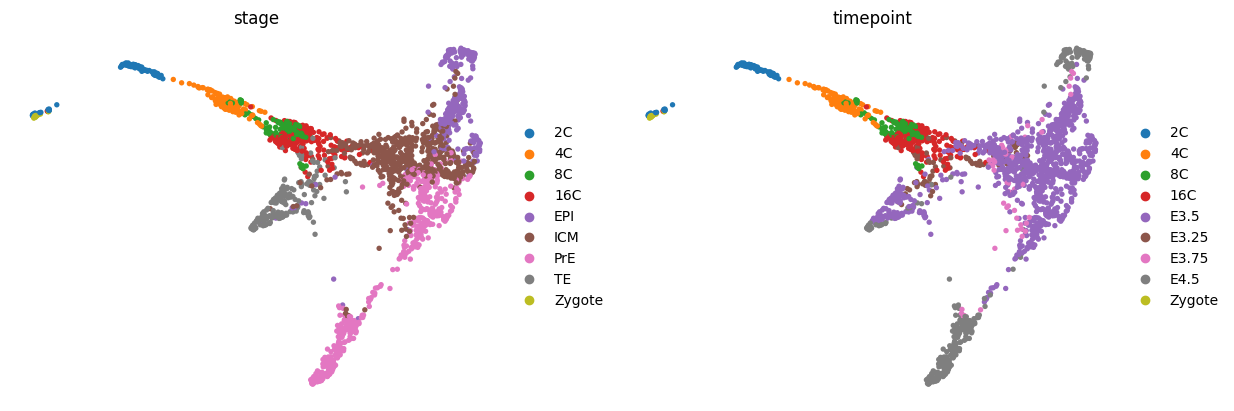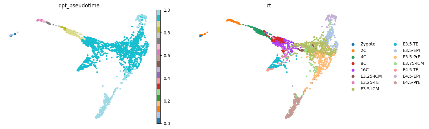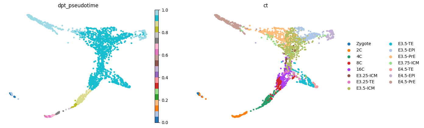 adata.uns['iroot'] = np.flatnonzero(adata.obs['ct'] == 'Zygote')[0]
