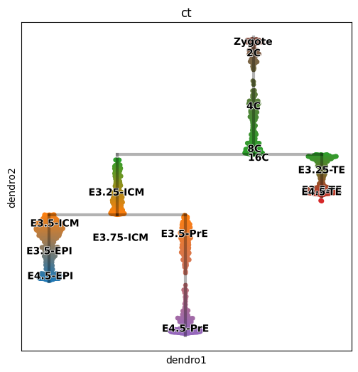 scf.pl.dendrogram(adata,color="ct",legend_loc="on data",color_milestones=True,legend_fontoutline=True)Generating dendrogram of tree