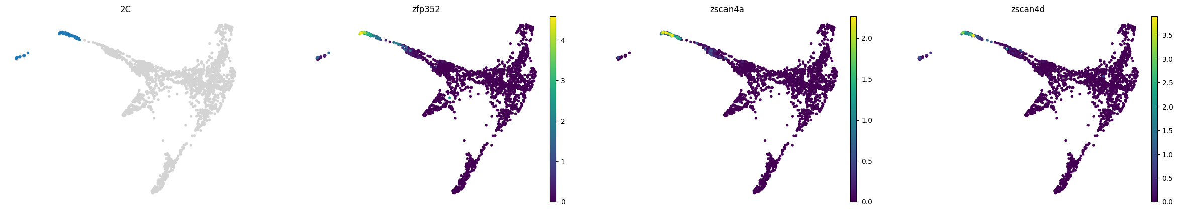 | 4 | Zscan4f | Yap1 | Esrrb | Lats2 | Dppa3 | Pdgfra | Klf2 | ||