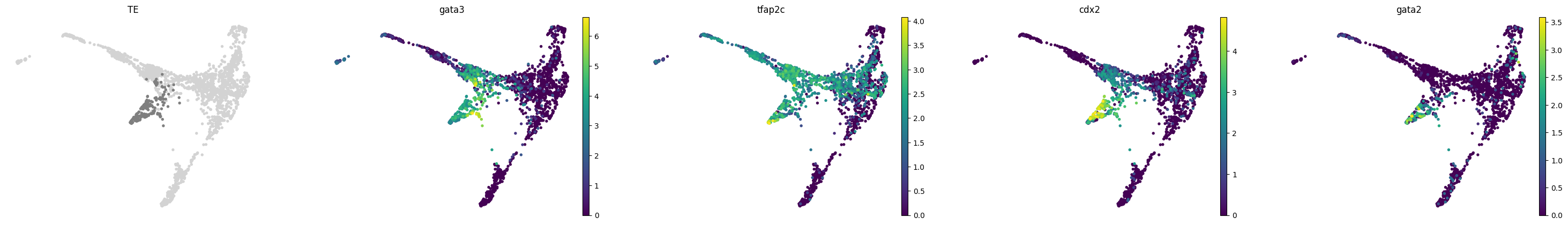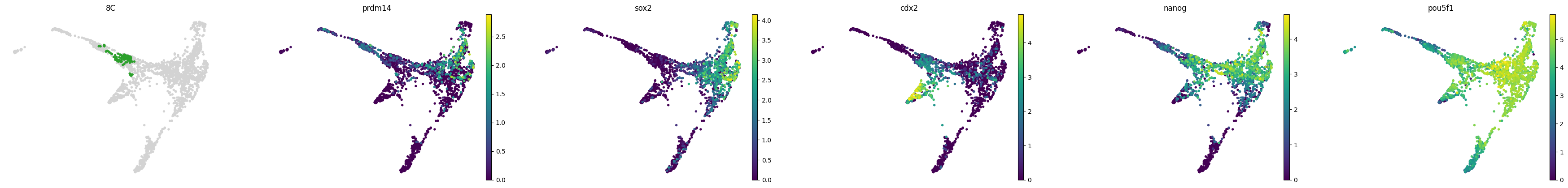 | 3 | Zscan4d | Carm1 | Cdx2 | Cdx2 | Eomes | Tfcp2l1 | Sox17 | Fgf4 | |