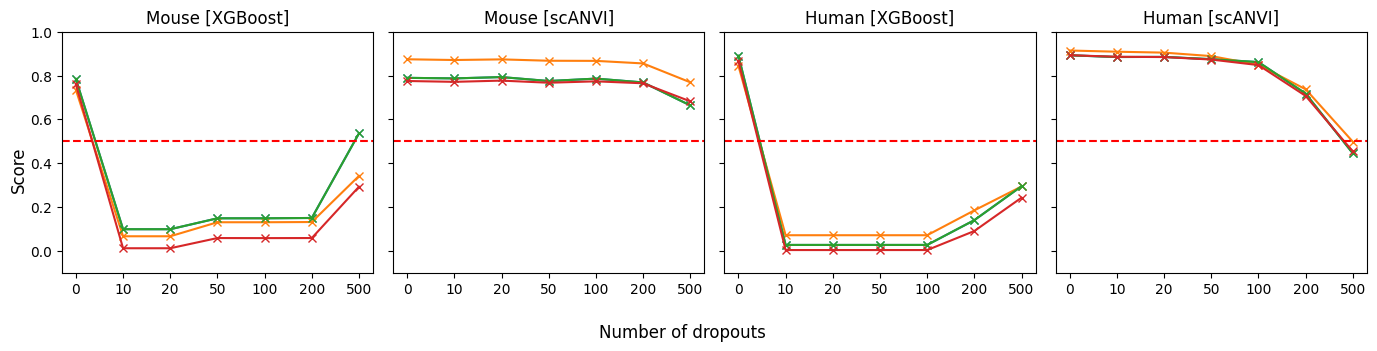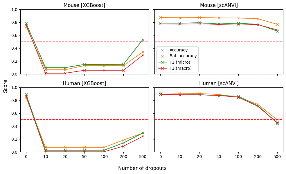human_stats = cripple_classifiers(human, human_scANVI, human_xg_scVI, groupby='C_scANVI_nsamples') 0%| | 0/7 [00:00<?, ?it/s]GPU available: True (cuda), used: True
